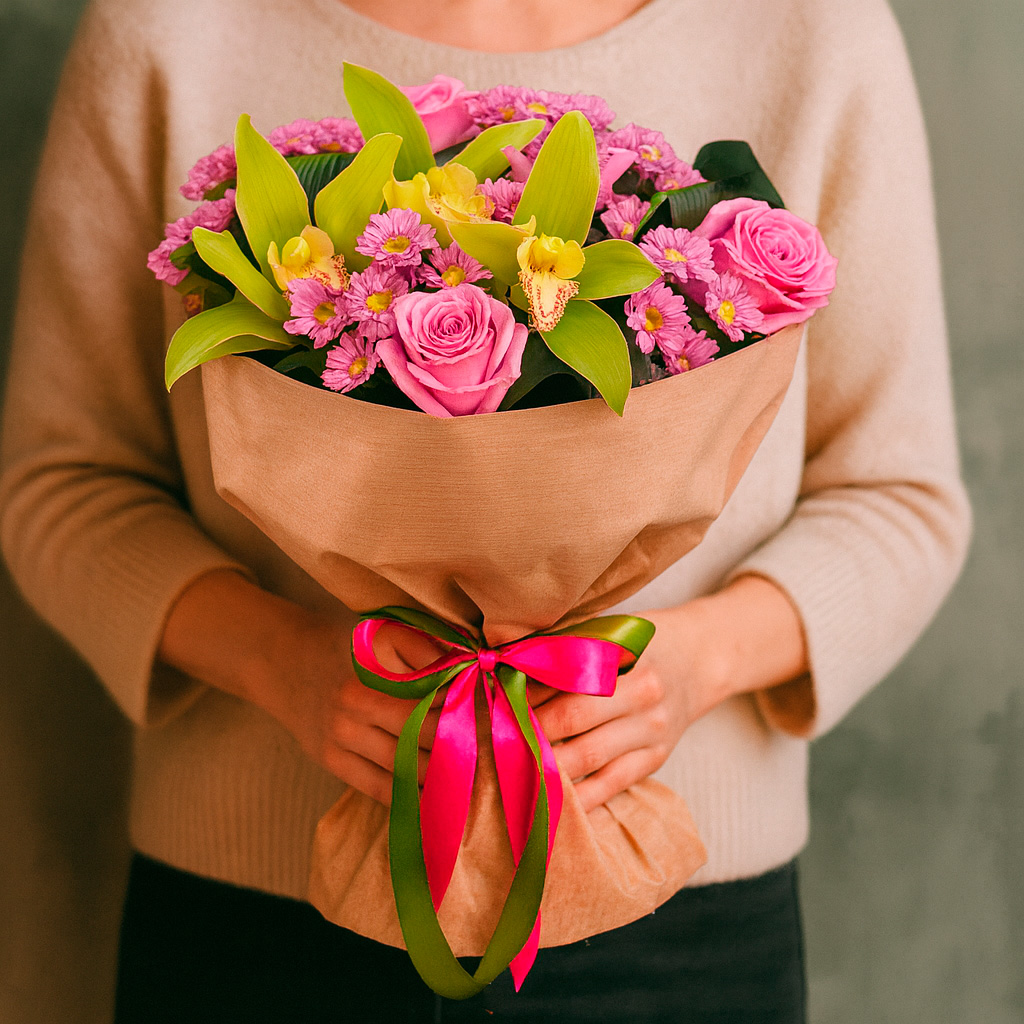 Мы используем только свежие цветы, которые поступают в магазин напрямую с плантаций и оранжерей. Каждый букет собирается вручную опытными флористами.