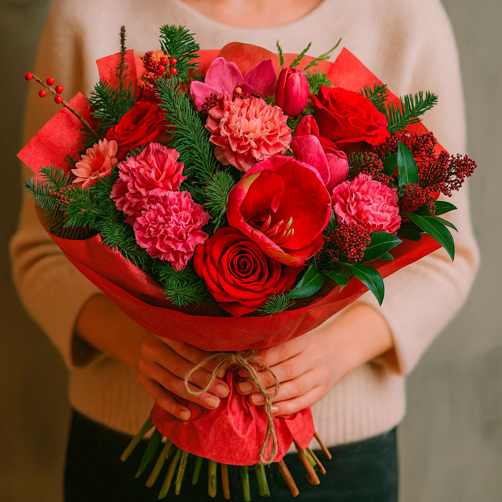 | Состав: | Илекс, Розы, Амариллисы, Орхидеи, Пионы, Пихта, Хризантемы |