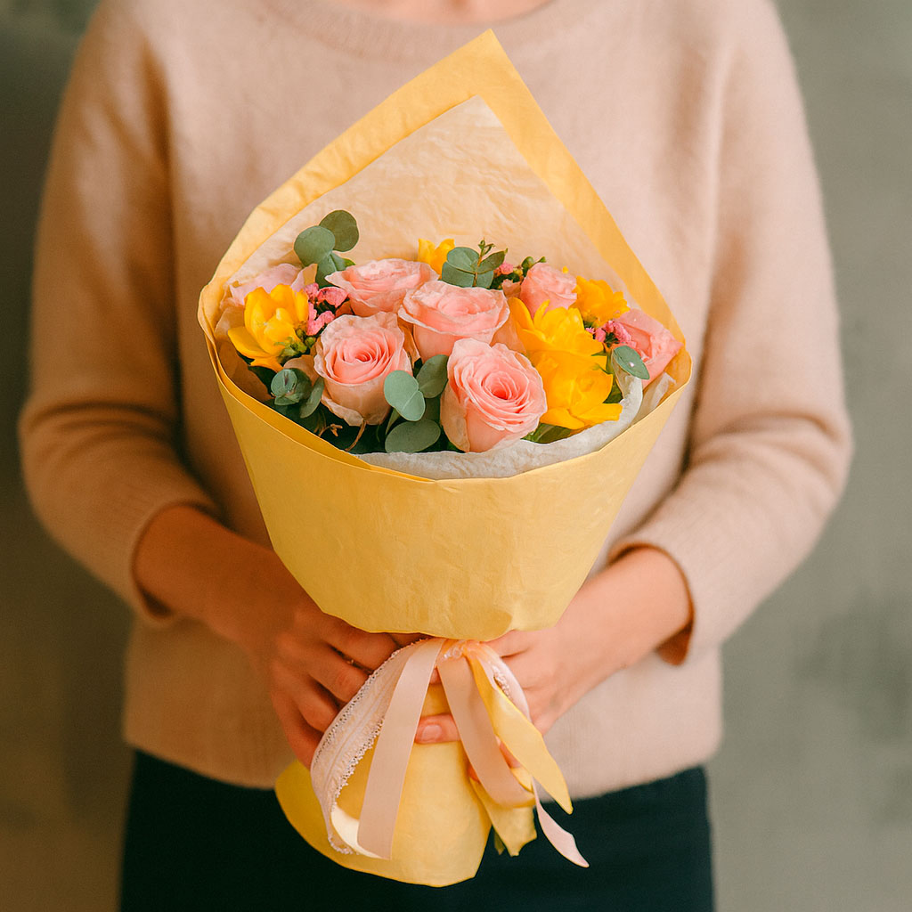 Подарок в виде этого букета станет отличным выбором для любого праздника — от дней рождения до юбилеев или просто как символ заботы. Он способен сделать каждый момент особенным и запоминающимся